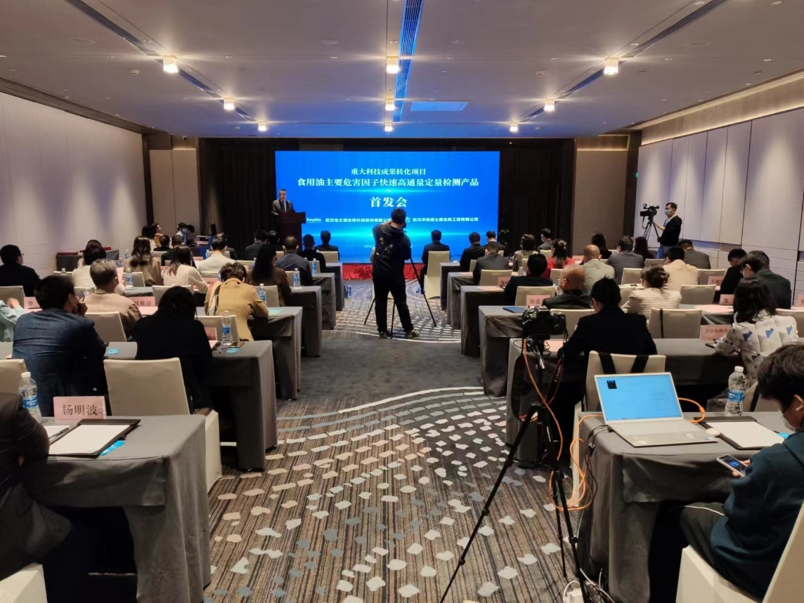 2022年10月15日(星期六)上午,武漢華美維士康生物工程有限公司“重大科技成果轉化項目-食用油主要危害因子快速高通量定量檢測產品”首發會在武漢光谷皇冠假日酒店2樓東湖廳舉行。